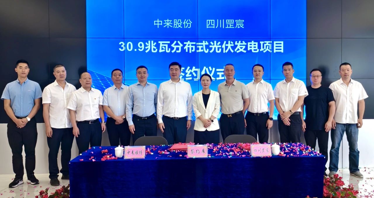 6月20日,中來新能源與四川罡宸不銹鋼有限責任公司(以下簡稱“四川罡宸”)簽訂30.9MW分布式光伏發(fā)電項目(以下簡稱“項目”),項目利用四川罡宸廠房屋面建設光伏發(fā)電系統(tǒng),采用中來N型單晶高效雙面透明背板組件,由浙能能服和中來新能源聯(lián)合投資并負責項目的設計、開發(fā)、建設、管理和運營等工作。樂山市沙灣區(qū)區(qū)長汪秀麗,樂山市沙灣區(qū)區(qū)經開區(qū)書記劉學;四川罡宸董事、總經理林學武,四川罡宸董事、黨委書記李桐光;中來股份副總裁、中來新能源總經理王宏亮,中來新能源開發(fā)總經理耿磊,中來民生中原大區(qū)總經理王學鵬等出席簽約儀式。